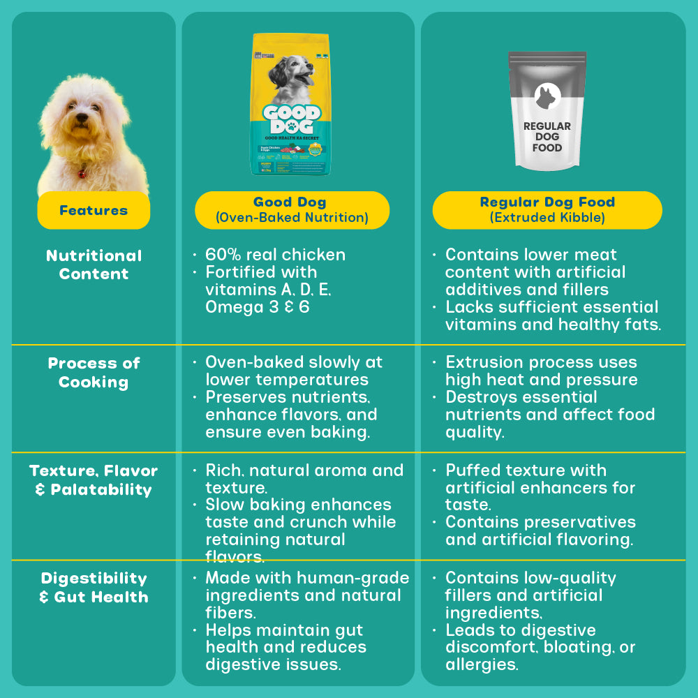 • Oven-Baked for Maximum Nutrition & Flavor – Unlike extruded kibble, our slow-cooked oven-baking process locks in essential nutrients, enhances taste, and ensures each kibble is evenly baked for consistent nutrition in every bite, making it ideal for picky eaters